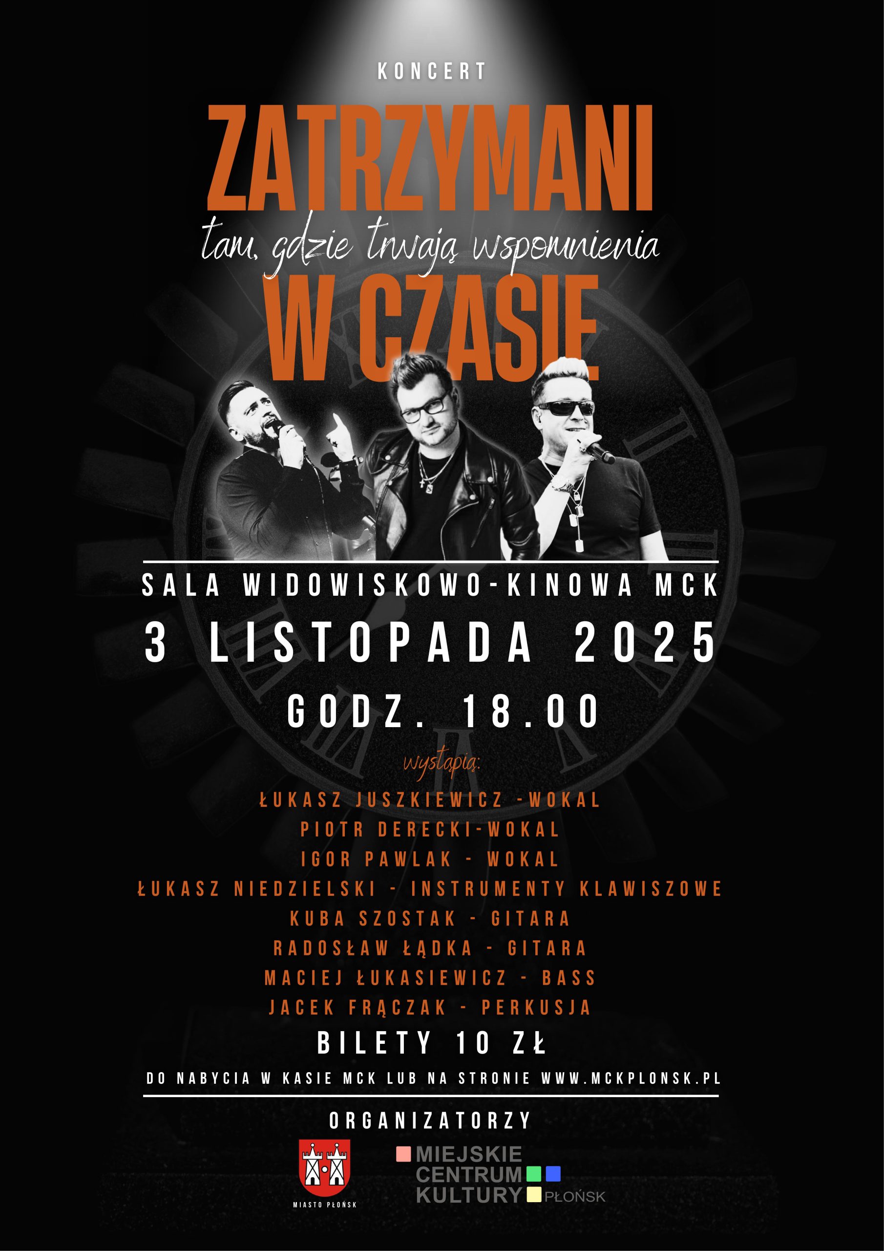 Miejskie Centrum Kultury w Płońsku zaprasza na wyjątkowy koncert „Zatrzymani w czasie. Tam, gdzie trwają wspomnienia”, który odbędzie się 3 listopada 2025 r. o godz. 18.00 w sali widowiskowo-kinowej MCK. Bilety w cenie 10 zł dostępne są w kasie MCK oraz na stronie Kup bilet