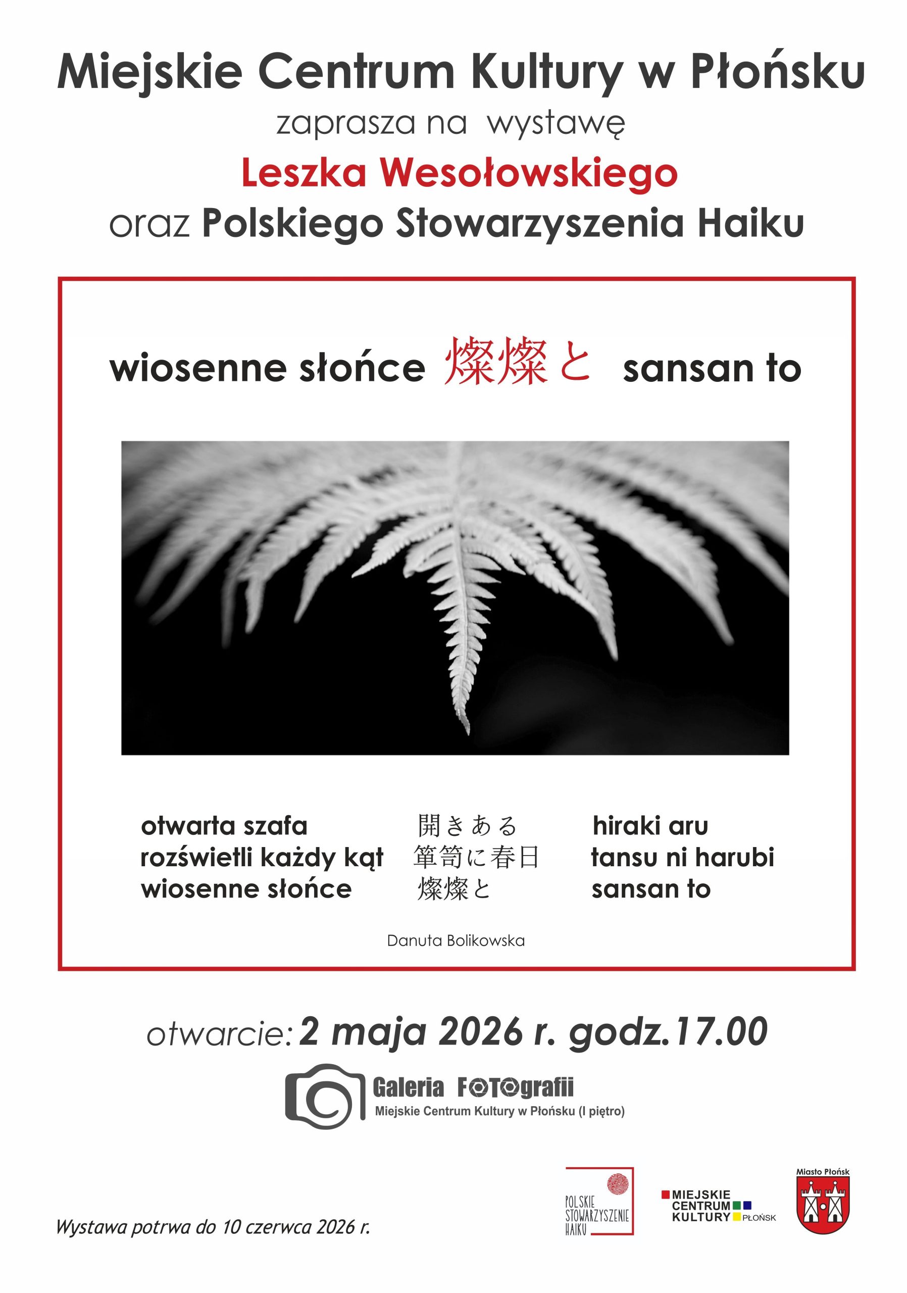 Otwarcie wystawy Leszka Wesołowskiego oraz Polskiego Stowarzyszenia Haiku pt. wiosenne słońce 燦燦と sansan to