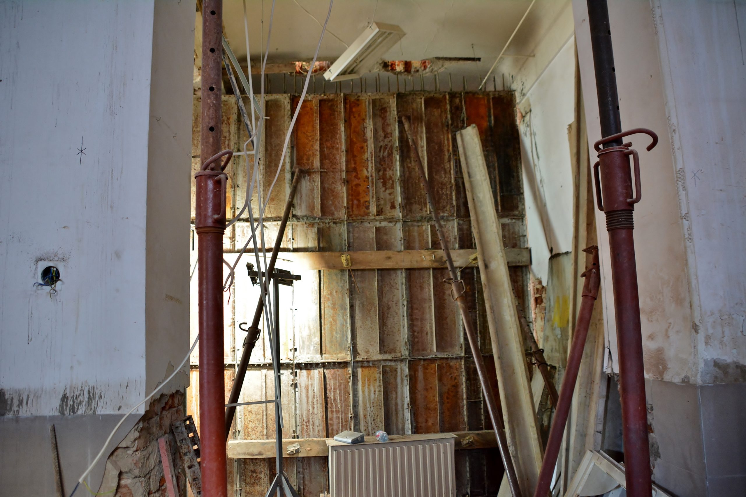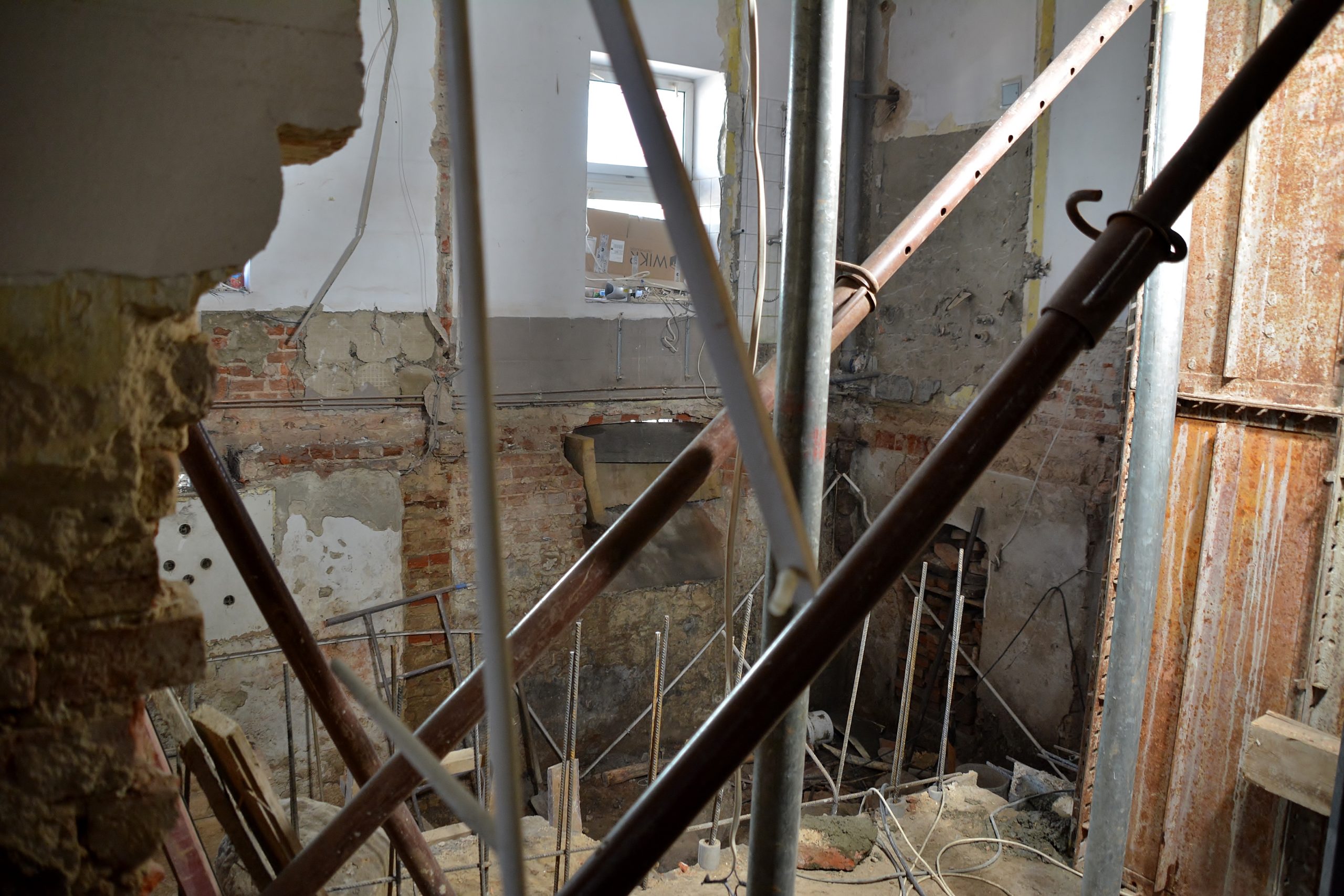 – Budynek główny (muzeum) – trwają prace rozbiórkowe i demontaże, realizowane są roboty konstrukcyjne: częściowo wykonano stropy żelbetowe na parterze, I i II piętrze. Przy projektowanej klatce schodowej w piwnicy i na parterze wymurowano ścianę wewnętrzną z bloczków wapienno-piaskowych oraz wybetonowano ścianę żelbetową. Realizowane są prace związane z wykonaniem schodów.